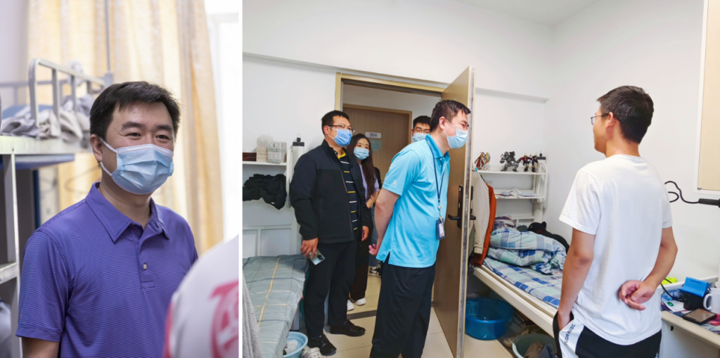 英国上市公司官网365经理刘明杰一行到实验7号楼研究生工位、沙河东区和西区宿舍看望本研员工,与同学们详细沟通了学习和科研进展,了解员工需求,鼓励同学们合理安排好科研、上课、学习及生活,积极锻炼身体,以实际行动守护美丽校园。