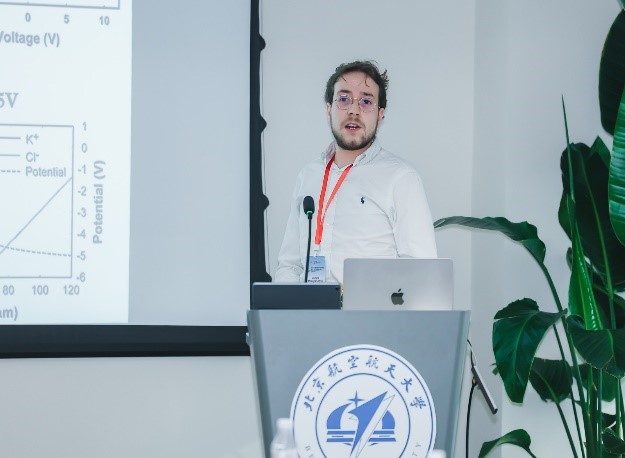 Soufiane Abdelghani-idrissi 副教授介绍了其在离子二极管及其衍生物的基本原理和应用方面的研究进展。北航英国上市公司官网365衡利苹教授介绍了仿生超浸润界面上的电致驱动微流体,通过设计一种超透明的光热释电超润滑的平台,可实现高粘液体的精准分离,展示了其在液体分离领域的巨大应用潜力。