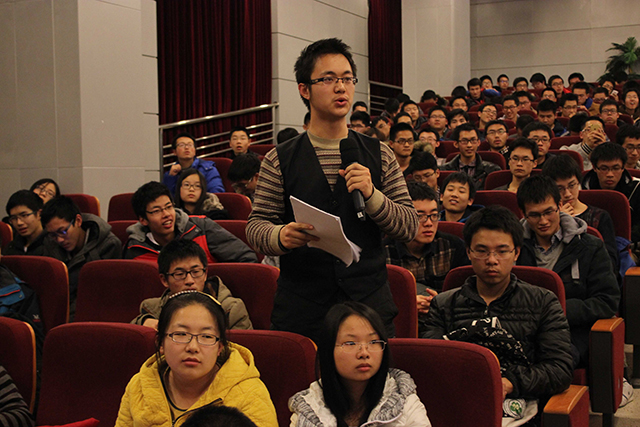 最后,江雷院士与在场的同学进行了热烈的互动和深入的交流。虽然已近晚上十一点,但是同学们积极踊跃、精彩深刻的一次次提问再次将报告推向高潮。正如江雷院士在报告会结束前所说:他会将科学研究与生活的真谛传递给更多的员工,启迪他们的人生,改变他们的人生,鼓舞更多的莘莘学子勇攀科学高峰!也正如一名同学在网络平台发表的感言:发现、发明、创造是正确的科研道路;强烈的责任感、高效的执行力是严谨的科研素养;10000小时定律是坚持不懈的科研精神。江雷老师,也许正如您说的,您真的改变了我们的人生!