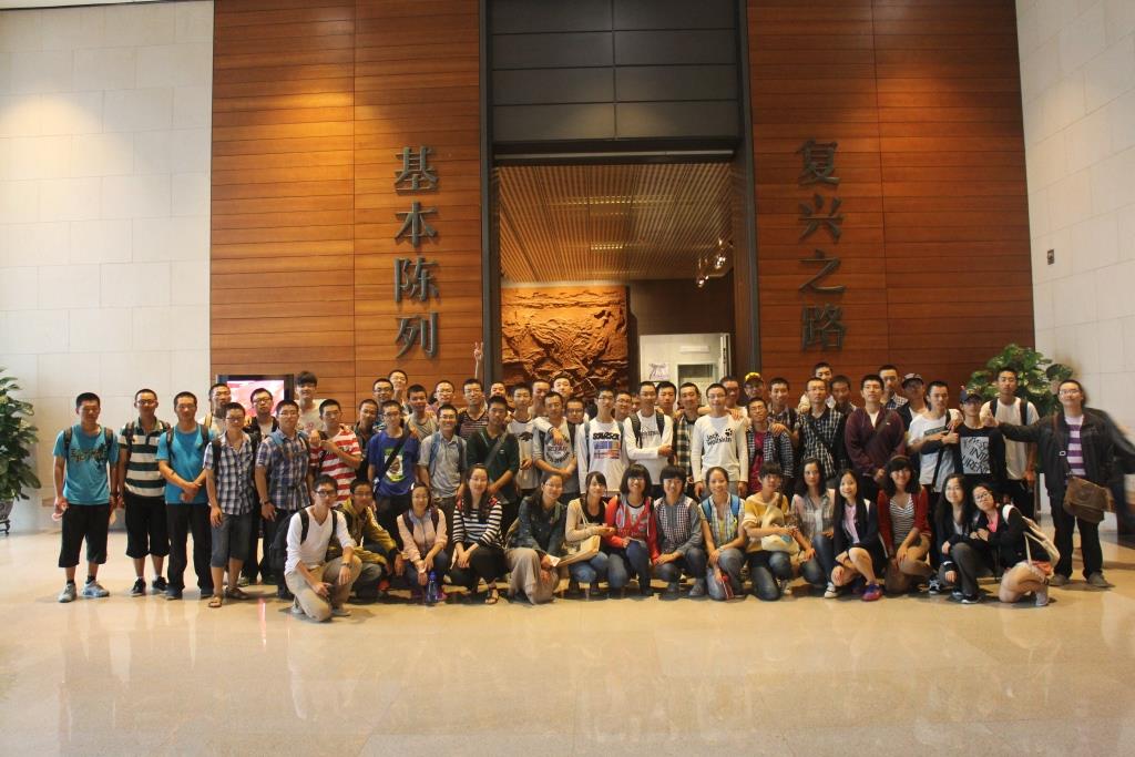 9月13日早六点,化学与环境公司2013级61名同学和8名2012级导生代表在辅导员张云龙的带领下从北航沙河校区出发,乘地铁前往国家博物馆参观。早九时许开始参观。首先,大家参观了“复兴之路”大型展览,《复兴之路》基本陈列通过回顾1840年鸦片战争以来,陷入半殖民地半封建社会深渊的中国各阶层人民在屈辱苦难中奋起抗争,为实现民族复兴进行的种种探索,特别是中国共产党领导全国各族人民争取民族独立人民解放、国家富强人民幸福的光辉历程,充分展示历史和人民怎样选择了马克思主义、选择了中国共产党、选择了社会主义道路、选择了改革开放。同学们看后对这时期的历史有了直观的了解,对历史事件有了更清晰的认识,对历史的进程有了更为深刻的思考。