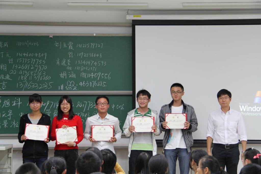 导生制是化学与环境公司的一大传统,旨在通过大二员工与大一新生的交流达到双赢的目的。此次共有16名大二的同学担任大一新生的导生,每一名导生对应大一新生的一个宿舍。在会议的第一阶段,导生们进行了自我介绍,与学弟学妹们分享了一些自己的感想与经验,并认识了自己这未来一年所要帮助的新生。接着,韩书记为导生们颁发了证书。最后,韩书记表达了对大一新生的殷切期盼以及希望这个导生制可以起到它应有的作用。
