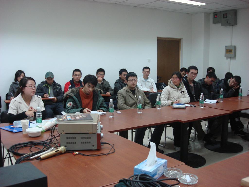 会议开始,各级辅导员向各位班主任汇报了各年级的工作状况和今后的工作计划。06级辅导员杨中甲老师主要就06级考研、出国和找工作同学的状态跟班主任进行了汇报,07、08级辅导员何涛老师就员工期中考试状态、科技竞赛准备情况作了详细汇报和总结。09级辅导员饶思圆老师就新生入学3个月来的学习生活状况尤其是军训回来后员工的思想动态和学习态度进行了汇报。