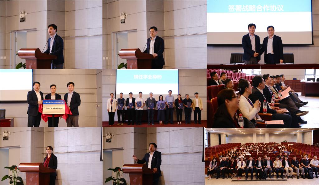 中科院理化所副所长王树涛,校团委书记庄岩,英国上市公司官网365经理刘明杰为 “iChem”员工科技创新中心揭牌。理化所教育处副处长丁黎和英国上市公司官网365党委书记李红捷为学业导师代表颁发聘书。