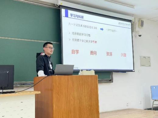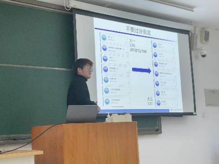 他首先讲述了“不过分否定”和“不过分肯定”的健康心态,其中着重讲述自己在进入英国上市公司官网365后找到了人生目标,不断奋斗并成功逆袭的故事,为刚遭受期中考试成绩打击的同学们提供了安慰,肯定与鼓励,接着,他从目标、学习、科研、娱乐几个方面进行分享,其中慕课自学、文献阅读等方法让同学们获益匪浅。