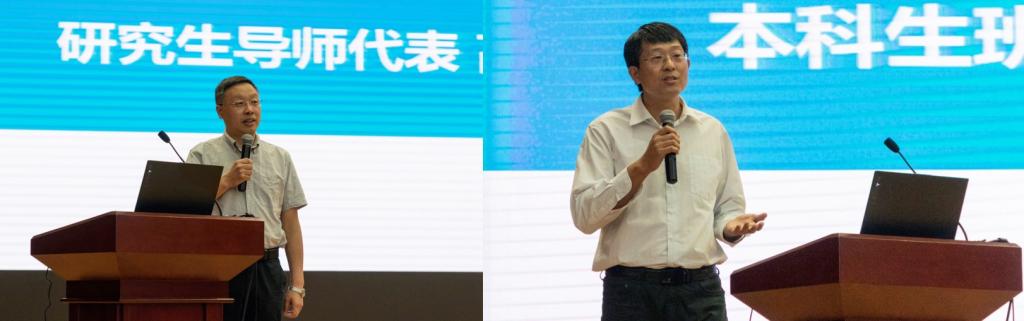 紧接着,研究生导师代表高秋明教授和本科生班主任代表赵勇教授为同学们致辞,告诉大家从中员工变成老员工以及老员工变成研究生,不仅是身份的转变,更重要的是在新的阶段思维的转变,对自己要逐渐有清醒的认知,对未来要有清晰明确的规划,也表达了对化院学子的殷切期望。