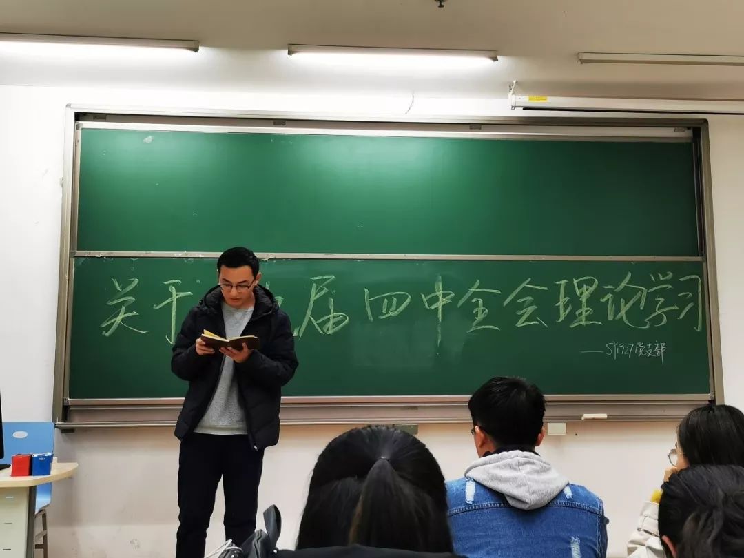 为积极响应党的号召,深入落实“不忘初心、牢记使命”主题教育,领会党的十九届四中全会精神。介于此,SY1927党支部于2019年11月16日下午16:00在J3-103教室开展关于十九届四中全会理论学习主题教育。