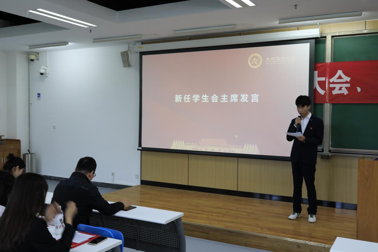第十五届研究生会主席团成员孙明言作2023年度工作报告。报告汇报了过去一年化院研会在政治引领、志愿实践等多方面的工作,各类活动展现了化院师生积极健康向上的精神风貌,也进一步完善了研究生会各项制度。